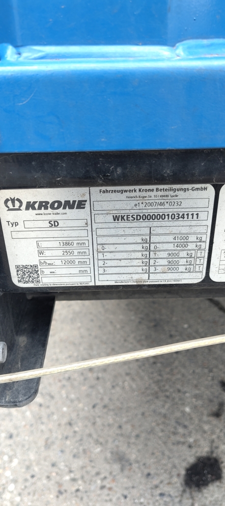 Krone Profi Liner trailer, year of production 2022. 1st axle lifting. Equipped with spare parts holders. Available for immediate pickup.